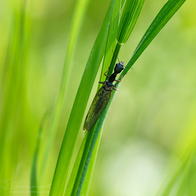 Nicht jedes Tier lässt sich leicht finden, viele leben versteckt zwischen Grashalmen oder im Gebüsch. Ich möchte euch einige von ihnen vorstellen. Dazu ist es jedoch nötig, auf die Knie zu gehen und aufmerksam das Geschehen in der Wiese zu beobachten. Dafür muss man lernen, Geduld aufzubringen und keine Hektik aufkommen lassen. Mit Fehlschlägen ist dabei zu rechnen. Denn so winzig wie die Insekten sind, so eifrig beobachten sie ihr Umfeld und bei unbedachten Bewegungen sind sie gleich weg. Es könnte ja ein Fressfeind sein.